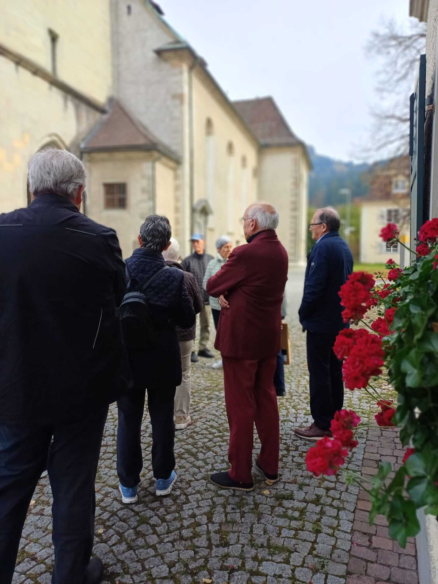 In Bregenz angekommen begann die Führung mit Hartmut Vogl am Kirchplatz, wo die Anwesenden einen Überblick über die lange Geschichte der Pfarrkirche St. Gallus erhielten – von den Anfängen im 5. Jahrhundert bis zur barocken Umgestaltung im 18. Jahrhundert.