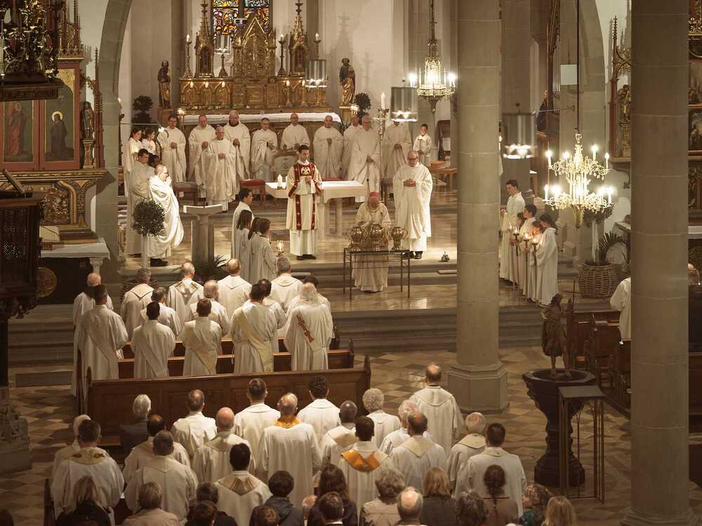 Am Montag, 14. April, wurde im Dom St. Nikolaus in Feldkirch die Chrisammesse gefeirt. In diesem besonderen Gottesdienst erneuerten die Priester und Diakone ihre Bereitschaft zum Dienst in der Kirche. Gleichzeitig wurden die Heiligen Öle gesegnet, die im Laufe des Jahres bei Sakramenten wie Taufe, Firmung, Krankensalbung und Weihen verwendet werden.