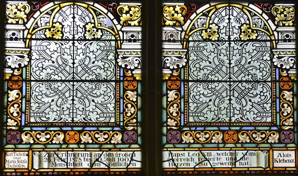Glasfenster Tiroler Glasmalerei Anstalt Innsbruck nach 1900, Entwurf Gottlieb Schuller