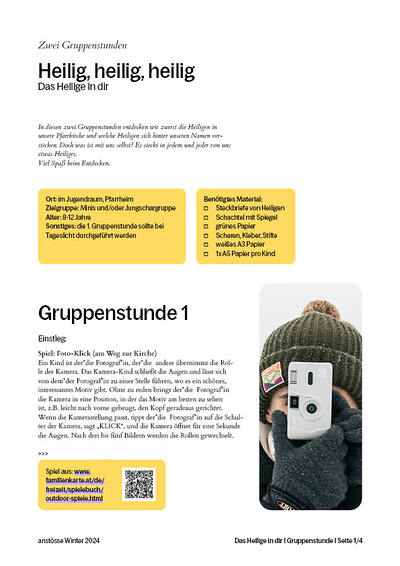 In diesen zwei Gruppenstunden entdecken wir zuerst die Heiligen in unserer Pfarrkirche und welche Heiligen sich hinter unseren Namen verstecken. Doch was ist mit uns selbst? Es steckt in jedem und jeder von uns etwas Heiliges.