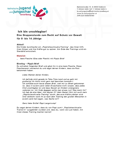 Die Kinder durchlaufen ein „Pippilottawiktualia-Training“, das ihnen hilft, ihren Körper und ihre Kräfte gut zu spüren. Am Ende des Trainings wird ein Standbild entwickelt.